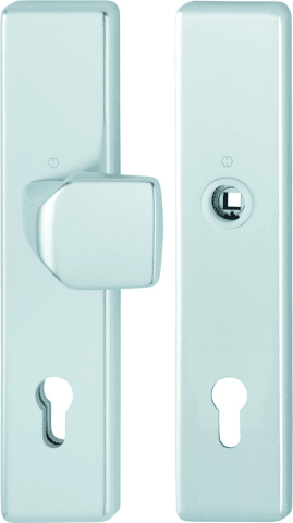HOPPE Vollblatt Sicherheits-Wechselgarnitur 61G/2221/2210,Langschild,ES 1,ohne Zylinderabdeckung 92/10/8,DIN Links-Rechts,naturfarben eloxiert,Türstärke67-77,gekröpft fest