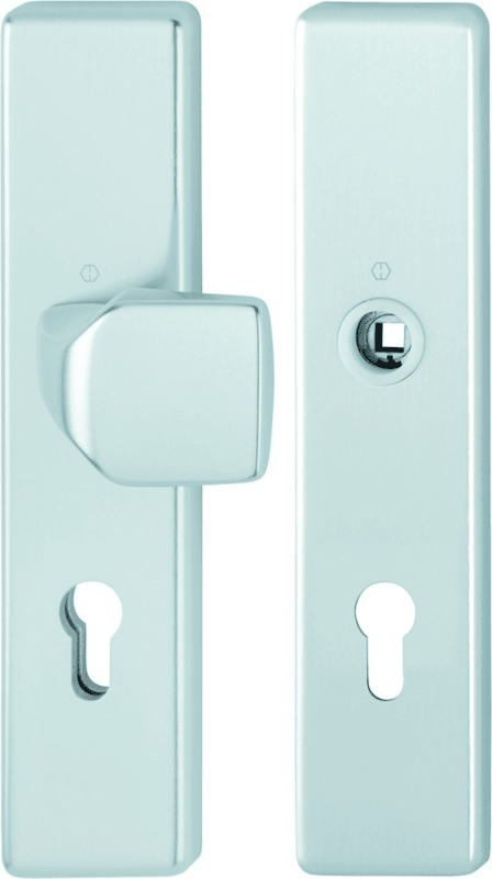 HOPPE Vollblatt Sicherheits-Wechselgarnitur 61G/2221/2210,Langschild,ES 1,ohne Zylinderabdeckung 72/8,DIN Links-Rechts,naturfarben eloxiert,Türstärke37-47,gekröpft fest