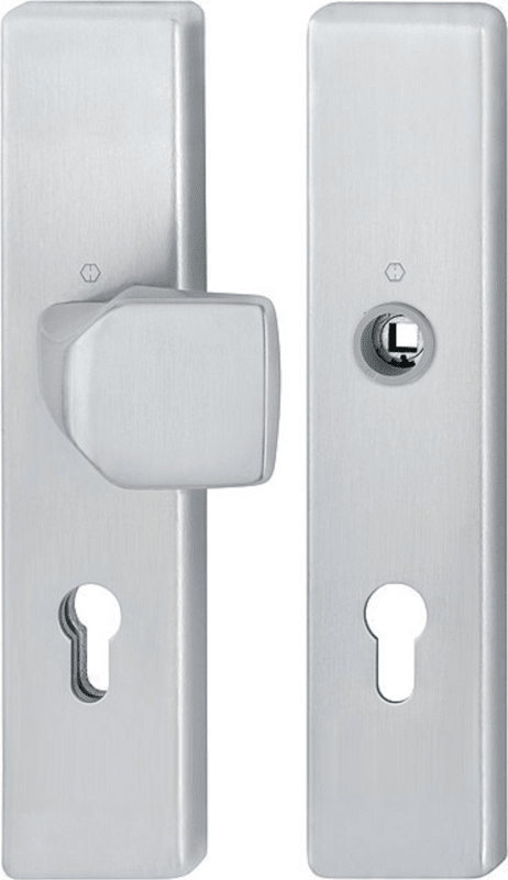HOPPE Vollblatt Sicherheits-Wechselgarnitur 61G/2221/2210,Langschild,ES 1,ohne Zylinderabdeckung 72/8,DIN Links-Rechts,edelstahloptik matt eloxiert,Türstärke37-47,gekröpft fest