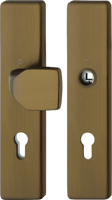 HOPPE Vollblatt Sicherheits-Wechselgarnitur 61G/2221/2210,Langschild,ES 1,ohne Zylinderabdeckung 72/8,DIN Links-Rechts,bronzefarben mittel matt eloxiert,Türstärke37-47,gekröpft fest