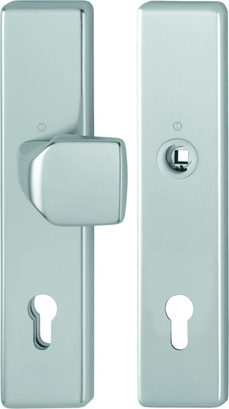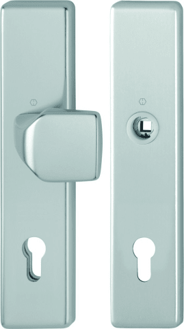 HOPPE Vollblatt Sicherheits-Wechselgarnitur 61G/2221/2210,Langschild,ES 1,ohne Zylinderabdeckung 92/10/8,DIN Links-Rechts,stahlfarbig eloxiert,Türstärke67-77,gekröpft fest