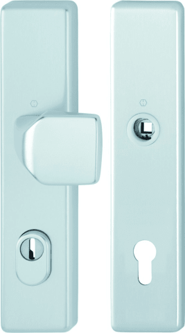 HOPPE Vollblatt Sicherheits-Wechselgarnitur 61G/2222ZA/2210,Langschild,ES 1,mit Zylinderabdeckung 92/10/8,DIN Links-Rechts,naturfarben eloxiert,Türstärke67-77,gekröpft fest