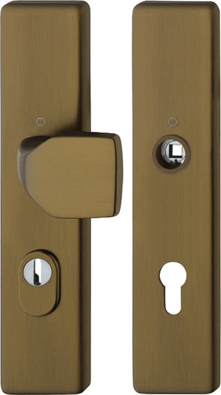 HOPPE Vollblatt Sicherheits-Wechselgarnitur 61G/2222ZA/2210,Langschild,ES 1,ohne Zylinderabdeckung 72/8,DIN Links-Rechts,bronzefarben mittel matt eloxiert,Türstärke37-47,gekröpft fest