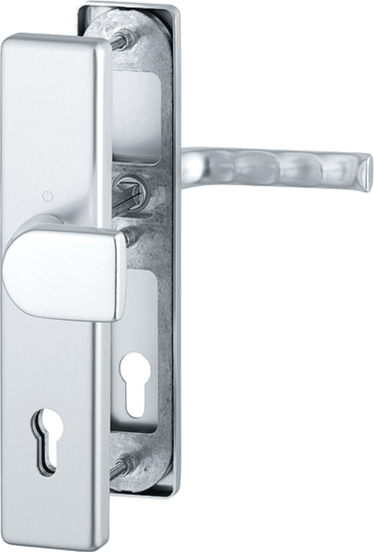 HOPPE Vollblatt Sicherheits-Wechselgarnitur London 78G/2221/2410/113,Langschild,ES 1,ohne Zylinderabdeckung 92/10,DIN Links-Rechts,naturfarben eloxiert,Türstärke66-71,gekröpft/gerade fest