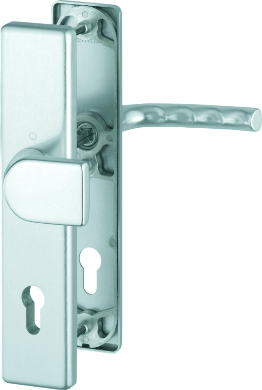 HOPPE® Schutz-Wechselgarnitur Birmingham 78G/2221A/2440/1117; Material: Aluminium; Befestigungsart: innen sichtbar verschraubt; Vierkant: 10 mm; Befestigungstechnik: mit Stütznocken; Abdeckung: Langsc
