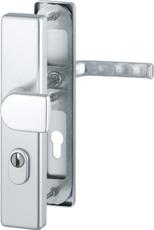HOPPE Vollblatt Sicherheits-Wechselgarnitur London 78G/2222ZA/2410/113,Langschild,ES 1,mit Zylinderabdeckung 72/8,DIN Links-Rechts,naturfarben eloxiert,Türstärke41-46,gekröpft/gekröpft fest