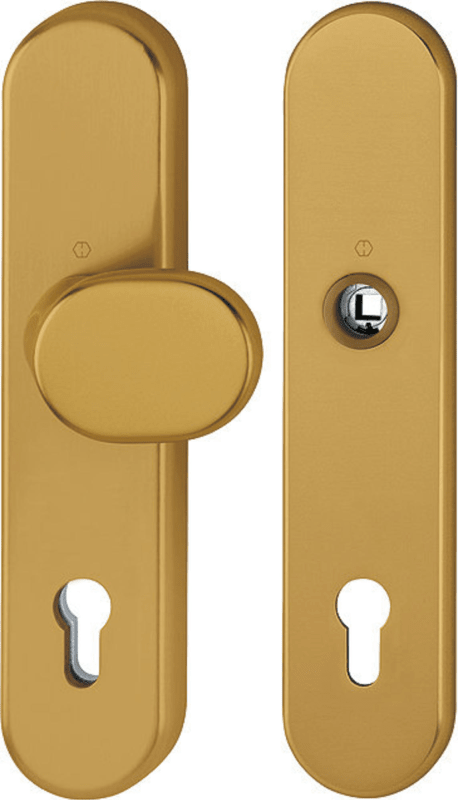 HOPPE Vollblatt Sicherheits-Wechselgarnitur 86G/3331/3310,Langschild,ES 1,ohne Zylinderabdeckung 92/10/8,DIN Links-Rechts,bronzefarben eloxiert,Türstärke67-77,gekröpft fest