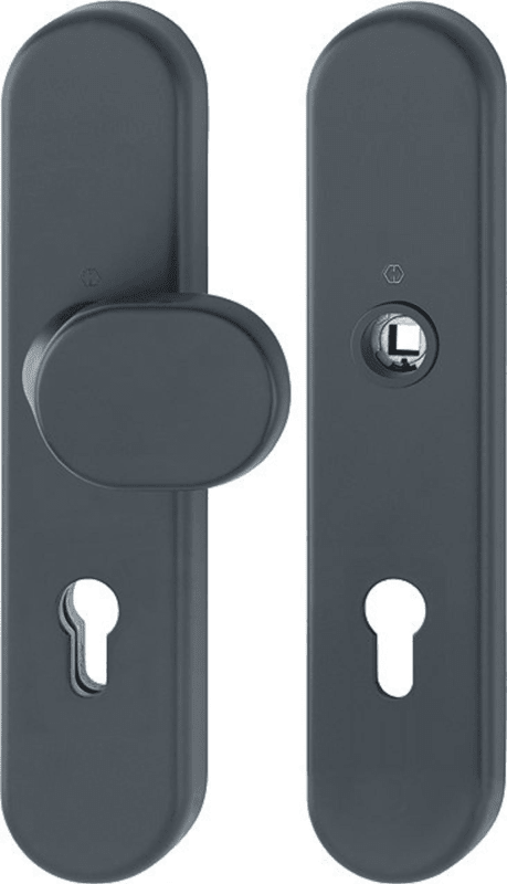 HOPPE Vollblatt Sicherheits-Wechselgarnitur 86G/3331/3310,Langschild,ES 1,ohne Zylinderabdeckung 72/8,DIN Links-Rechts,schwarz matt eloxiert,Türstärke37-47,gekröpft fest