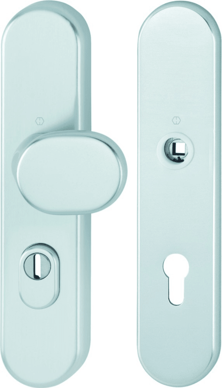 HOPPE Vollblatt Sicherheits-Wechselgarnitur 86G/3332ZA/3310,Langschild,ES 1,mit Zylinderabdeckung 72/8,DIN Links-Rechts,naturfarben eloxiert,Türstärke37-47,gekröpft fest