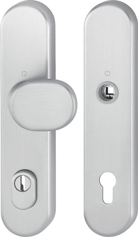 HOPPE Vollblatt Sicherheits-Wechselgarnitur 86G/3332ZA/3310,Langschild,ES 1,ohne Zylinderabdeckung 92/10/8,DIN Links-Rechts,edelstahloptik matt eloxiert,Türstärke67-77,gekröpft fest