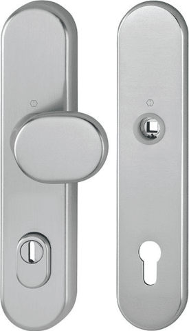 HOPPE Vollblatt Sicherheits-Wechselgarnitur 86G/3332ZA/3310,Langschild,ES 1,mit Zylinderabdeckung 92/10/8,DIN Links-Rechts,stahlfarbig eloxiert,Türstärke67-77,gekröpft fest