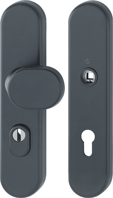 HOPPE Vollblatt Sicherheits-Wechselgarnitur 86G/3332ZA/3310,Langschild,ES 1,ohne Zylinderabdeckung 72/8,DIN Links-Rechts,schwarz matt eloxiert,Türstärke37-47,gekröpft fest