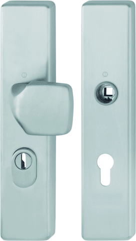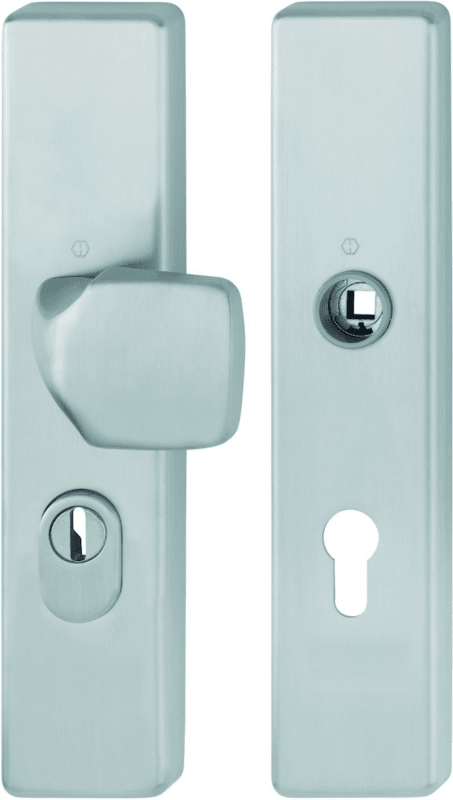 HOPPE Vollblatt Sicherheits-Wechselgarnitur E61G/2222ZA/2210,Langschild,ES 1,mit Zylinderabdeckung 72/8,DIN Links-Rechts,edelstahl matt,Türstärke37-47,gekröpft fest