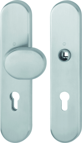 HOPPE Sicherheits-Wechselgarnitur E86G/3331/3310, Langschild oval, 12mm, ES 1, ohne Zylinderabdeckung, Profilzylinder gelocht, Entfernung 72mm, Vierkant 8mm,Türstärke 37-47mm, edelstahl matt