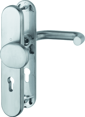 HOPPE® Schutz-Wechselgarnitur Baden E86G/3331A/3440/1388Z; Material: Edelstahl; Befestigungsart: innen sichtbar verschraubt; Vierkant: 8 mm; Befestigungstechnik: mit Stütznocken; Abdeckung: Langschild