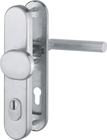 HOPPE Vollblatt Sicherheits-Wechselgarnitur Amsterdam E86G/3332ZA/3310/1400Z,Langschild,ES 2,mit Zylinderabdeckung 92/10,DIN Links-Rechts,edelstahl matt,Türstärke67-72,gekröpft/Gehrung fest