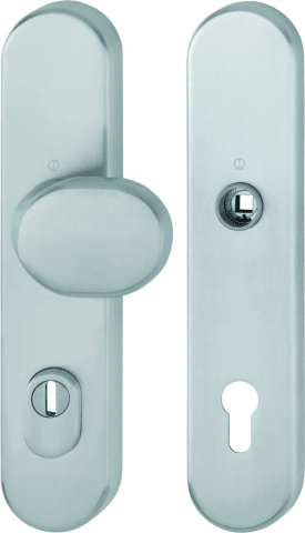 HOPPE Sicherheits-Wechselgarnitur E86G/3332ZA/3310, Langschild oval, 15mm, ES 1, ohne Zylinderabdeckung, Profilzylinder gelocht, Entfernung 92mm, Vierkant 10/8mm,Türstärke 67-77mm, edelstahl matt