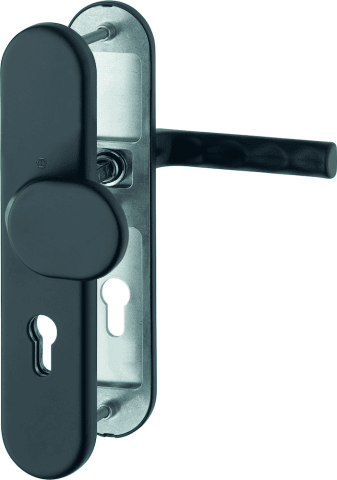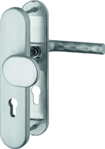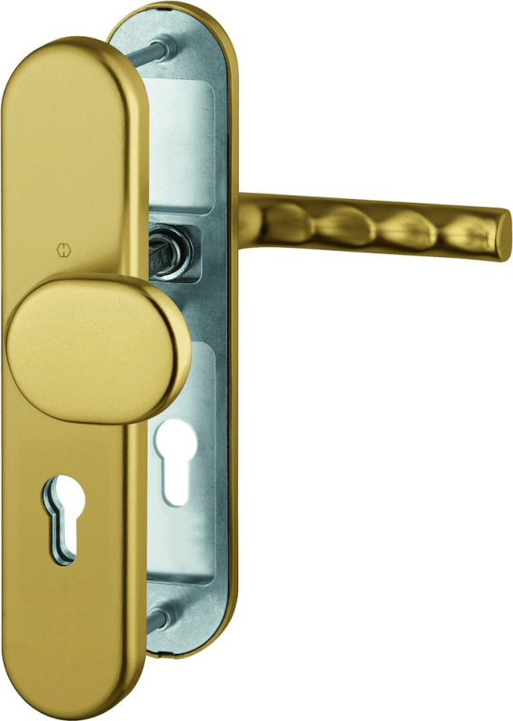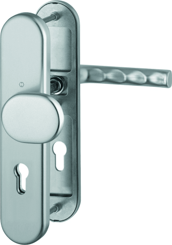 HOPPE® Schutz-Wechselgarnitur Hamburg FS-86G/3331/3310/1700; Material: Aluminium; Befestigungsart: verdeckt verschraubt; Vierkant: 9 mm; Befestigungstechnik: mit Stütznocken; Abdeckung: Langschild; La