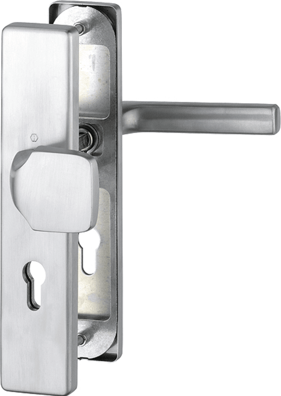 HOPPE® Schutz-Wechselgarnitur Dallas FS-E61G/2221/2210/1643F; Material: Edelstahl; Befestigungsart: verdeckt verschraubt; Vierkant: 9 mm; Befestigungstechnik: mit Stütznocken; Abdeckung: Langschild; L