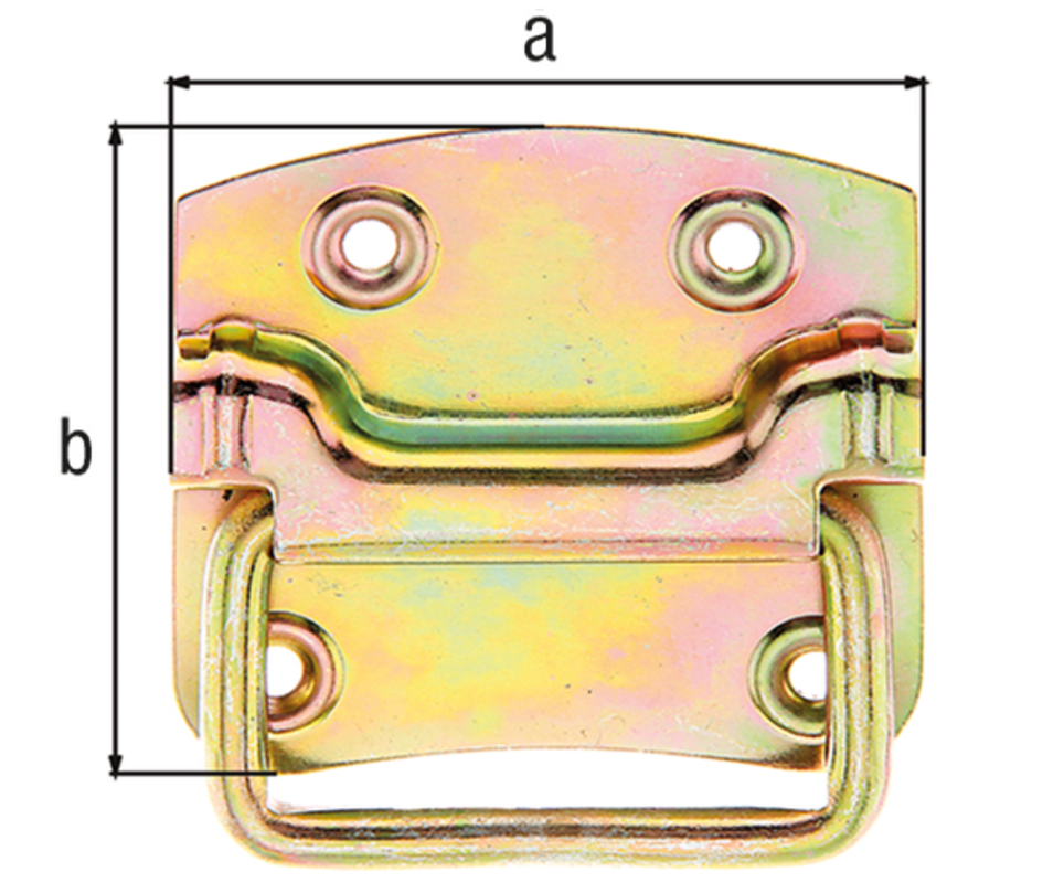 GAH Alberts Kistengriff; Oberfläche: galvanisch verzinkt; Basis: Kistengriff; Ausführung: mit abgerundeten Kanten; Material: Stahl; Farbe: gelb; Länge: 104 mm; Breite: 80 mm; Stärke: 1,2 mm; Schraublo