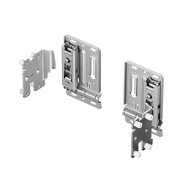 Korpusteil zum Einpressen im KorpusWandteil zum Anschrauben an die WandIntegrierte Aushängesicherung verhindert unbeabsichtigtes Herunterfallen des Hängeschrankes (gemäß Möbelnorm DIN EN 14749)Geeigne