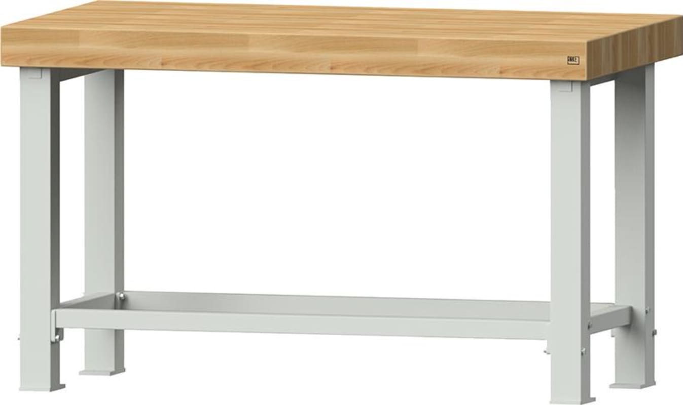 Schwerlastwerkbank, Serie VS • Gesamttraglast: 4200 kg • Werkbankplatte: Buche massiv, längsseits riegelartig zahnverleimt, Oberfläche geölt • Plattenstärke: 100 mm – doppelte Plattenstärke • Füße: