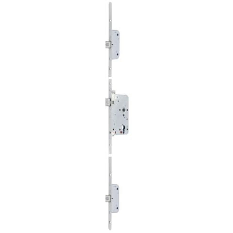 BKS Panik-Mehrfachverriegelung SECURY 2110; Produkttyp: Panik-Mehrfachverriegelung; Produkttyp (Hersteller): Mehrfachverriegelung; Ausführung: Drückerbetätigt,Automatik (SV); Verriegelung: automatisch; Entriegelung: über Schließzylinder oder Türgriff; Verriegelungsart (Zusatzverriegelung): Fallenriegel; Drückernuss: geteilte Nuss; Anzahl Verriegelungen: 3 St.; Tagesfallenfunktion: Ja; Stulpform: Flachstulp; Material Stulp: Edelstahl; Funktion Anti Panik: Umschaltfunktion B; Schlosskasten: geschlossen; Schlosskastenhöhe: 165 mm; Wechsel: ohne Wechsel; Material Zusatzriegel: Stahl; Norm: DIN 18250,DIN EN 179,DIN EN 1125,DIN EN 1125,DIN EN 179; Schlossklasse: Klasse 4; Zulassung: für Rauchschutz,für Feuerschutz,für Fluchttüren; Türart: Objekttür; Türflügelanzahl: einflügelig; Türwerkstoff: Holz,Stahl; Dornmaß: 65 mm; Hinterdornmaß: 28 mm; Drückernussvierkant: 9 mm; Entfernung: 72 mm; Lochung: Profilzylinder gelocht; DIN-Richtung: DIN Links; Stulpausführung: rund; Stulpbreite: 20 mm; Stulplänge: 1.777,5 mm; Stulpstärke: 3 mm; Farbton Stulp: edelstahl; Material Falle: Stahl; Ausführung Falle: Fallenriegel; Riegelausschluss: 20 mm; Riegelausschluss Nebenriegel: 20 mm; Einbautiefe Hauptschlosskasten: 93 mm; Oberfläche Stulp: matt gebürstet; Drückerhöhe: 949 mm; Zusatzinformation: mit Stahl-Späneschutzhülsen