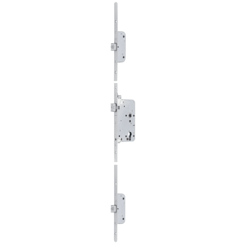BKS Panik-Mehrfachverriegelung SECURY 2110; Produkttyp: Panik-Mehrfachverriegelung; Produkttyp (Hersteller): Mehrfachverriegelung; Ausführung: Drückerbetätigt,Automatik (SV); Verriegelung: automatisch; Entriegelung: über Schließzylinder oder Türgriff; Verriegelungsart (Zusatzverriegelung): Fallenriegel; Drückernuss: geteilte Nuss; Anzahl Verriegelungen: 3 St.; Tagesfallenfunktion: Ja; Stulpform: Flachstulp; Material Stulp: Edelstahl; Funktion Anti Panik: Umschaltfunktion B; Schlosskasten: geschlossen; Schlosskastenhöhe: 165 mm; Wechsel: ohne Wechsel; Material Zusatzriegel: Stahl; Norm: DIN 18250,DIN EN 179,DIN EN 1125,DIN EN 1125,DIN EN 179; Schlossklasse: Klasse 4; Zulassung: für Rauchschutz,für Feuerschutz,für Fluchttüren; Türart: Objekttür; Türflügelanzahl: einflügelig; Türwerkstoff: Holz,Stahl; Dornmaß: 65 mm; Hinterdornmaß: 28 mm; Drückernussvierkant: 9 mm; Entfernung: 72 mm; Lochung: Profilzylinder gelocht; DIN-Richtung: DIN Links; Stulpausführung: rund; Stulpbreite: 20 mm; Stulplänge: 1.777,5 mm; Stulpstärke: 3 mm; Farbton Stulp: edelstahl; Material Falle: Stahl; Ausführung Falle: Fallenriegel; Einbautiefe Hauptschlosskasten: 93 mm; Oberfläche Stulp: matt gebürstet; Drückerhöhe: 949 mm; Zusatzinformation: mit Stahl-Späneschutzhülsen