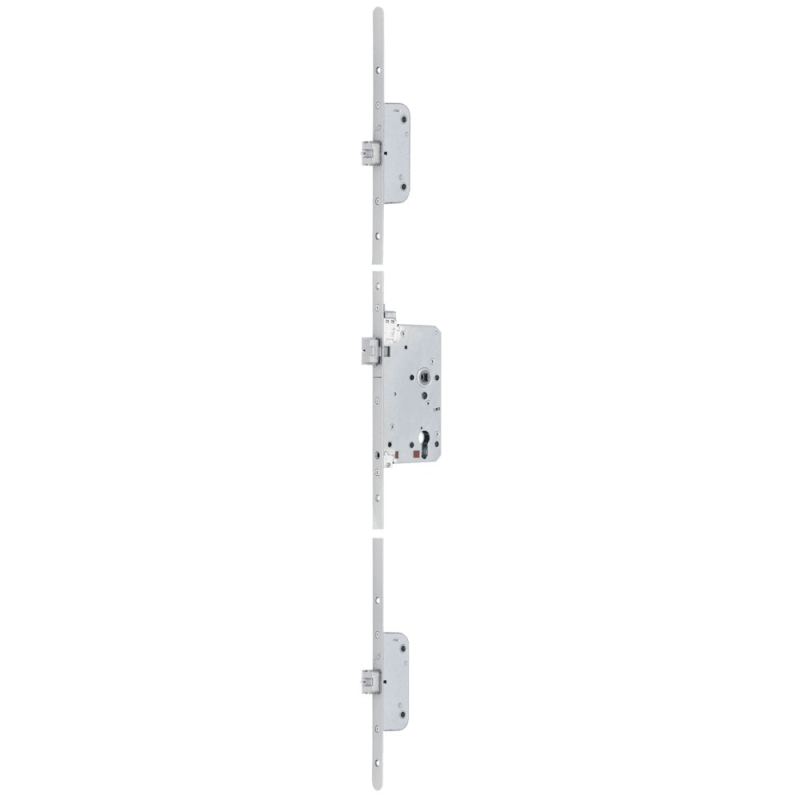 BKS Panik-Mehrfachverriegelung SECURY 2111; Produkttyp: Panik-Mehrfachverriegelung; Produkttyp (Hersteller): Mehrfachverriegelung; Ausführung: Automatik (SV),Drückerbetätigt; Verriegelung: automatisch; Entriegelung: über Schließzylinder oder Türgriff; Verriegelungsart (Zusatzverriegelung): Fallenriegel; Drückernuss: geteilte Nuss; Anzahl Verriegelungen: 3 St.; Tagesfallenfunktion: Nein; Stulpform: Flachstulp; Material Stulp: Edelstahl; Funktion Anti Panik: Umschaltfunktion B; Schlossriegel: 1 tourig; Schlosskasten: geschlossen; Schlosskastenhöhe: 165 mm; Wechsel: ohne Wechsel; Norm: DIN EN 179,DIN EN 1125,DIN EN 1125,DIN EN 179; Schlossklasse: Klasse 4; Zulassung: für Feuerschutz,für Fluchttüren,für Rauchschutz; Türflügelanzahl: zweiflügelig; Türwerkstoff: Holz,Stahl; Dornmaß: 80 mm; Drückernussvierkant: 9 mm; Entfernung: 72 mm; Lochung: Profilzylinder gelocht; DIN-Richtung: DIN Rechts; Stulpausführung: kantig; Stulpbreite: 24 mm; Stulplänge: 2.285 mm; Stulpstärke: 3 mm; Farbton Stulp: edelstahl; Oberfläche Stulp: matt gebürstet; Einbautiefe Hauptschlosskasten: 105 mm