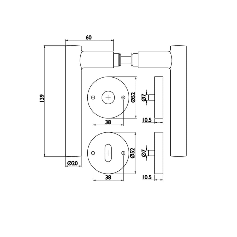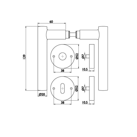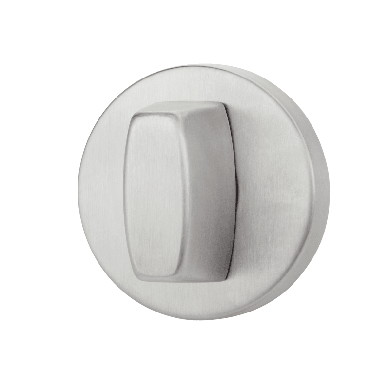ZT-Drückergarnitur, Serie Sensations - Modell MOON, C-Form mit Bogen nach oben, mit runden Rosetten. Edelstahl matt. 8 mm Vk, Ts 40 mm.