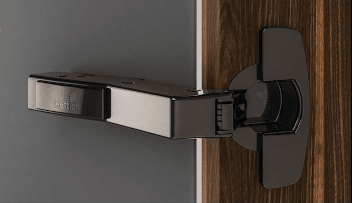 Das Hettich Winkelscharnier W45 bietet einen Öffnungswinkel von 95° und ist in elegantem Schwarz erhältlich. Mit hochwertigem Material gefertigt, kombiniert es Funktionalität und modernes Design perfe