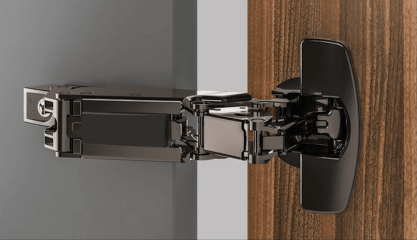 Das Hettich Weitwinkelscharnier hat eine Null-Einsprung, die eine breite Türöffnung von 165° ermöglicht. Seine schlichte schwarze Oberfläche verleiht jeder Tür einen modernen Touch. Erleben Sie die la