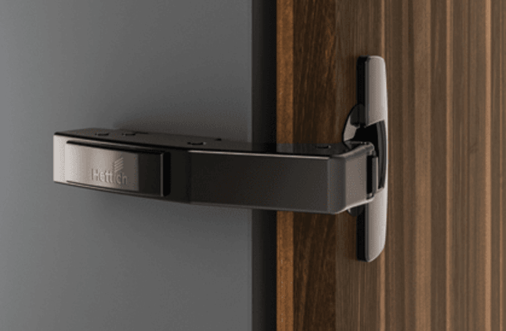Entdecken Sie das Hettich Winkelscharnier W90 mit einem Öffnungswinkel von 95° in elegantem Schwarz. Dieses hochwertige Scharnier bietet nicht nur eine hervorragende Funktionalität, sondern verleiht I