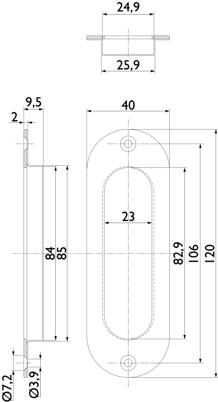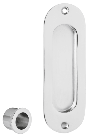 Set bestehend aus 2 Muschelgriffen 3657, und Zuziehmuschel 3669, ungelocht, Oberfl. 04 (chrom glänzend)