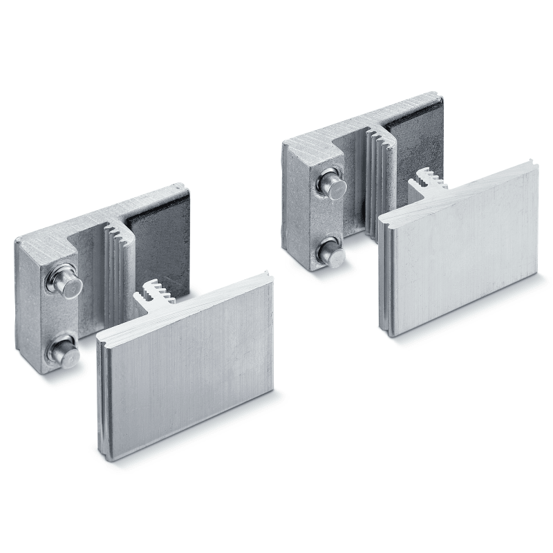 Set Endstücke für Glasklemmplatte 45 mm 2 Stk. Endstücke für die Montage auf der Flügelaußenseite zur Befestigung der durchgehenden Verblendung und Seitenkappen