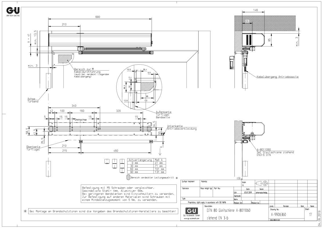 DTN 80 Set GleitschieneMontageeinheit pro Türflügel