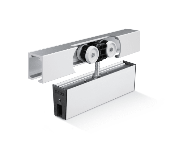 Set Perlan 140 für Glasflügel Für Wandbefestigung mit verdecktem Wandwinkel, Glasklemmplatte einzeln verblendet und Perlan SoftStop,