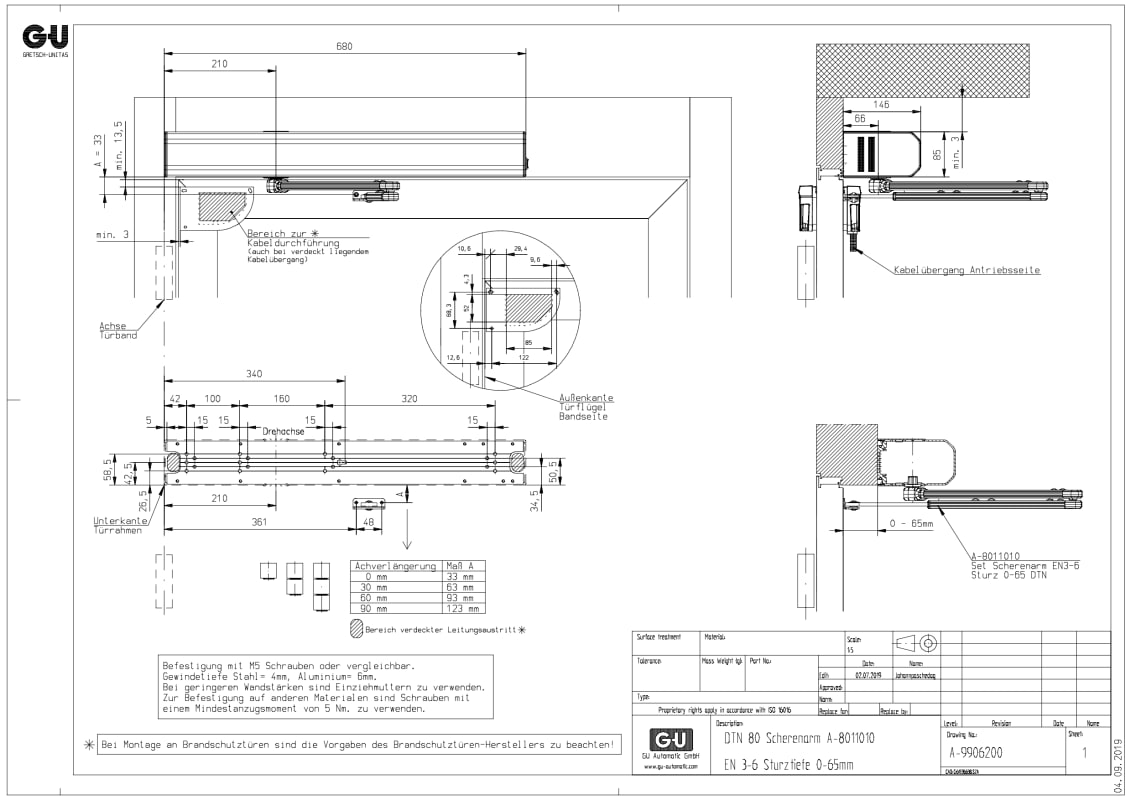 G-U Scherengestänge für Tür Automation