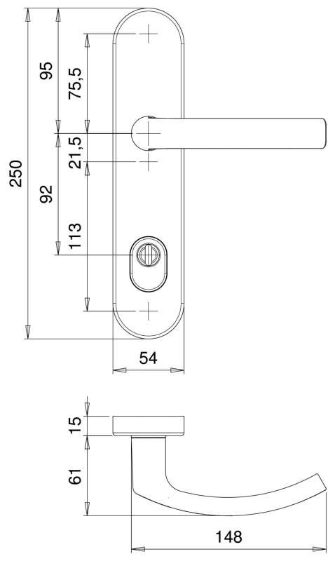 Dieckmann EST-Schutz-Drücker-Garnitur, ES-1, Serie Uranus, ovales Langschild 15mm, 92 ZA,, 8mm VKT, festdrehbar gelagert, 2000/064 F00