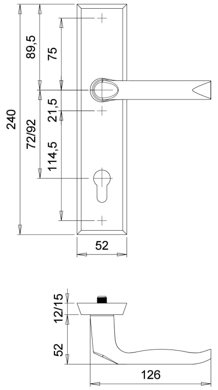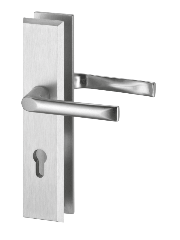 • Haustür -Sicherheits-Drückergarnitur 8774H DIN 18257 (ES 1) • Außenschild und Innenschild massiv integrierte Teilstahleinlage im Außenschild 2,0 mm • Oberflächengehärtet, innen sichtbare 3-fach Vers