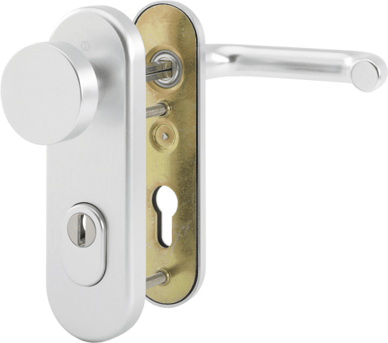 HOPPE Vollblatt Sicherheits-Wechselgarnitur Paris 58/3332KZA/353K-1/138L,Kurzschild,ES 1,mit Zylinderabdeckung 72/8,DIN Links-Rechts,naturfarben eloxiert,Türstärke37-42,rund/U-Form fest