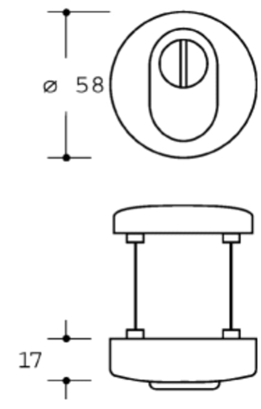 Schutzrosette ZA aus hochwertigem Polyamid, mit Edelstahl Unterkonstruktion. Durchmesser: Innen 55 mm, Au~en 58 mm. Für Zylinderüberstände 10,5-15 mm einschlie~lich Schrauben. Bitte Türstärken