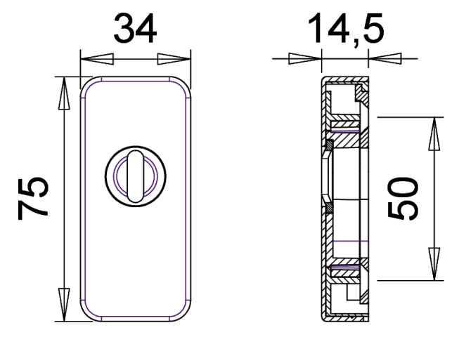 EDI, Profiltür-Schutz-Schiebe-Schlüsselrosette, Lochung: Profilzylinder gelocht, Stärke Abdeckung außen: 14,5 mm, Modell: Keto, Modellnummer: 8121, Demontagesicherung durch Bajonettverzahnung, Materia
