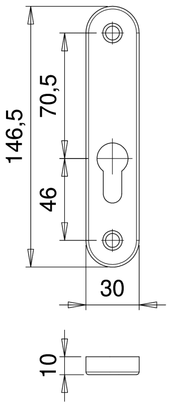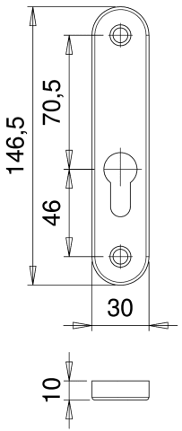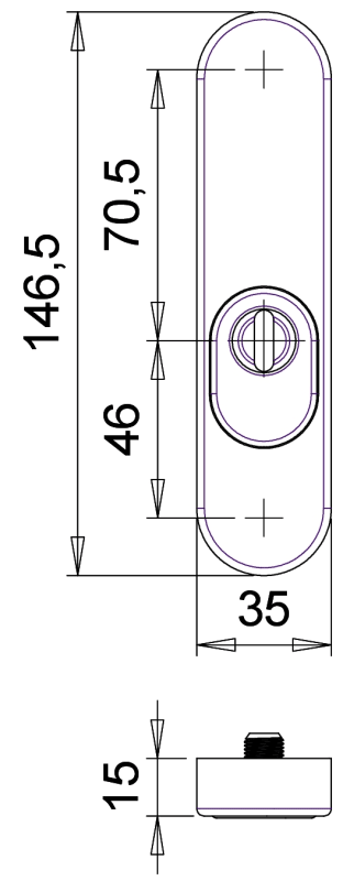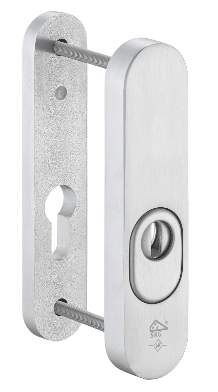 EDI, Profiltür-Schutz-Schlüsselrosette, Lochung: Profilzylinder gelocht, Stärke Abdeckung außen: 15 mm, Stärke Abdeckung innen: 10 mm, Modellnummer: 7258, Material: Aluminium, Farbton: naturfarbig, Oberfläche: eloxiert, Befestigungsart: verdeckt verschraubt, Befestigungstechnik: mit Stütznocken, Ausführung: mit Zylinderabdeckung, Türstärke min.: 69 mm, Türstärke max.: 75 mm, Form: oval, DIN-Richtung: DIN Links-Rechts, Breite: 35 mm, Länge: 146,5 mm, Norm: SKG, Türart: Rahmentüren, Türwerkstoff: Aluminium, Kunststoff