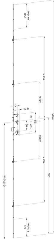 WINKHAUS, Objekttür-Mehrfachverriegelung, Lochung: Profilzylinder gelocht, Dornmaß: 35 mm, Entfernung: 92 mm, Drückernussvierkant: 10 mm, Stulpbreite: 16 mm, Stulpausführung: kantig, Stulpform: Flachstulp, Stulpeigenschaft: gerade, Stulplänge: 2105 mm, Stulpstärke: 2,25 mm, Modell: STV, Modellnummer: F1660 RT4, Ausführung: Schlüsselbetätigt, DIN-Richtung: DIN Links-Rechts, Einzelteilmaterial Stulp: Stahl, Farbton Stulp: chromatiert, Oberfläche Stulp: matt, Griffhöhe: 1050 mm, Anzahl Zusatzverriegelung: 4 St., Verriegelungsart: Rastexzenter, Pilzkopf, Schlossklasse: Klasse 3, Riegelausschluss: 20 mm, Wechsel: mit Wechsel, Funktion: Normalfunktion, Türart: Abschlusstür, Türflügelanzahl: einflügelig, zweiflügelig, Türausprägung: Türe gefälzt, Schlossriegel: 2 tourig, Einzelteilmaterial Falle: Stahl, Falleneigenschaft: mit umstellbarer Falle LS/RS, Einzelteilmaterial Riegel: Stahl, Riegeleigenschaft: Standard, Einzelteilmaterial Verriegelungen: Stahl, Drückernuss: Standard, Einzelteilmaterial Drückernuss: Stahl, Schlosskasten: geschlossen, Einzelteilmaterial Schlosskasten: Stahl, Oberfläche Schlosskasten: verzinkt, Schlosskastenlänge: 185 mm, Schlosskastenbreite: 50,25 mm, Norm: DIN 18251, Türwerkstoff: Holz, Aluminium, Kunststoff, Flügelfalzhöhe min.: 1875 mm, Flügelfalzhöhe max.: 2230 mm