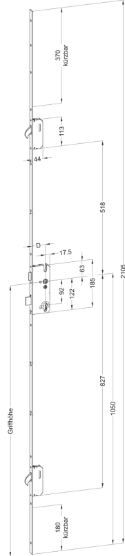 WINKHAUS, Objekttür-Mehrfachverriegelung, Lochung: Profilzylinder gelocht, Dornmaß: 40 mm, Entfernung: 92 mm, Drückernussvierkant: 8 mm, Stulpbreite: 24 mm, Stulpausführung: kantig, Stulpform: Flachstulp, Stulpeigenschaft: gerade, Stulplänge: 2105 mm, Stulpstärke: 3 mm, Modell: STV, Modellnummer: F2462 M2, Ausführung: Schlüsselbetätigt, DIN-Richtung: DIN Links-Rechts, Einzelteilmaterial Stulp: Stahl, Farbton Stulp: chromatiert, Oberfläche Stulp: matt, Anzahl Zusatzverriegelung: 2 St., Verriegelungsart: Schwenkriegel, Schlossklasse: Klasse 3, Riegelausschluss: 20 mm, Wechsel: mit Wechsel, Funktion: Normalfunktion, Türart: Abschlusstür, niedrige Tür, Türflügelanzahl: einflügelig, zweiflügelig, Türausprägung: Türe stumpf, Schlossriegel: 2 tourig, Einzelteilmaterial Falle: Stahl, Falleneigenschaft: mit umstellbarer Falle LS/RS, Einzelteilmaterial Riegel: Stahl, Riegeleigenschaft: Standard, Einzelteilmaterial Verriegelungen: Stahl, Drückernuss: Standard, Einzelteilmaterial Drückernuss: Stahl, Schlosskasten: geschlossen, Einzelteilmaterial Schlosskasten: Stahl, Oberfläche Schlosskasten: verzinkt, Schlosskastenlänge: 185 mm, Schlosskastenbreite: 54,5 mm, Norm: DIN 18251, Türwerkstoff: Holz, Aluminium, Kunststoff, Flügelfalzhöhe min.: 1735 mm, Flügelfalzhöhe max.: 1875 mm