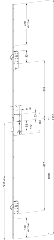 WINKHAUS, Objekttür-Mehrfachverriegelung, Lochung: Profilzylinder gelocht, Dornmaß: 45 mm, Entfernung: 92 mm, Drückernussvierkant: 8 mm, Stulpbreite: 24 mm, Stulpausführung: kantig, Stulpform: Flachstulp, Stulpeigenschaft: gerade, Stulplänge: 2105 mm, Stulpstärke: 3 mm, Modell: STV, Modellnummer: F2462 M2, Ausführung: Schlüsselbetätigt, DIN-Richtung: DIN Rechts, Einzelteilmaterial Stulp: Stahl, Farbton Stulp: chromatiert, Oberfläche Stulp: matt, Anzahl Zusatzverriegelung: 2 St., Verriegelungsart: Schwenkriegel, Schlossklasse: Klasse 3, Riegelausschluss: 20 mm, Wechsel: mit Wechsel, Funktion: Normalfunktion, Türart: Abschlusstür, niedrige Tür, Türflügelanzahl: einflügelig, zweiflügelig, Türausprägung: Türe stumpf, Schlossriegel: 2 tourig, Einzelteilmaterial Falle: Stahl, Falleneigenschaft: mit Standardfalle, Einzelteilmaterial Riegel: Stahl, Riegeleigenschaft: Standard, Einzelteilmaterial Verriegelungen: Stahl, Drückernuss: Standard, Einzelteilmaterial Drückernuss: Stahl, Schlosskasten: geschlossen, Einzelteilmaterial Schlosskasten: Stahl, Oberfläche Schlosskasten: verzinkt, Schlosskastenlänge: 185 mm, Schlosskastenbreite: 59,5 mm, Norm: DIN 18251, Türwerkstoff: Holz, Aluminium, Kunststoff, Flügelfalzhöhe min.: 1735 mm, Flügelfalzhöhe max.: 1875 mm