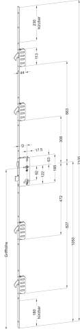 WINKHAUS, Objekttür-Mehrfachverriegelung, Lochung: Profilzylinder gelocht, Dornmaß: 45 mm, Entfernung: 92 mm, Drückernussvierkant: 8 mm, Stulpbreite: 24 mm, Stulpausführung: kantig, Stulpform: Flachstulp, Stulpeigenschaft: gerade, Stulplänge: 2105 mm, Stulpstärke: 3 mm, Modell: STV, Modellnummer: F2460 M4, Ausführung: Schlüsselbetätigt, DIN-Richtung: DIN Rechts, Einzelteilmaterial Stulp: Stahl, Farbton Stulp: chromatiert, Oberfläche Stulp: matt, Griffhöhe: 1050 mm, Anzahl Zusatzverriegelung: 4 St., Verriegelungsart: Schwenkriegel, Schlossklasse: Klasse 3, Riegelausschluss: 20 mm, Wechsel: mit Wechsel, Funktion: Normalfunktion, Türart: Abschlusstür, Türflügelanzahl: einflügelig, zweiflügelig, Türausprägung: Türe stumpf, Schlossriegel: 2 tourig, Einzelteilmaterial Falle: Stahl, Falleneigenschaft: mit Standardfalle, Einzelteilmaterial Riegel: Stahl, Riegeleigenschaft: Standard, Einzelteilmaterial Verriegelungen: Stahl, Drückernuss: Standard, Einzelteilmaterial Drückernuss: Stahl, Schlosskasten: geschlossen, Einzelteilmaterial Schlosskasten: Stahl, Oberfläche Schlosskasten: verzinkt, Schlosskastenlänge: 185 mm, Schlosskastenbreite: 59,5 mm, Norm: DIN 18251, Türwerkstoff: Holz, Aluminium, Kunststoff, Flügelfalzhöhe min.: 1875 mm, Flügelfalzhöhe max.: 2230 mm