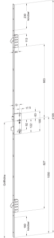 WINKHAUS, Objekttür-Mehrfachverriegelung, Lochung: Profilzylinder gelocht, Dornmaß: 40 mm, Entfernung: 92 mm, Drückernussvierkant: 8 mm, Stulpbreite: 24x6 mm, Stulpausführung: kantig, Stulpform: U-Stulp, Stulpeigenschaft: gerade, Stulplänge: 2105 mm, Stulpstärke: 3 mm, Modell: STV, Modellnummer: U2460 M2, Ausführung: Schlüsselbetätigt, DIN-Richtung: DIN Links, Einzelteilmaterial Stulp: Stahl, Farbton Stulp: chromatiert, Oberfläche Stulp: matt, Griffhöhe: 1050 mm, Anzahl Zusatzverriegelung: 2 St., Verriegelungsart: Schwenkriegel, Schlossklasse: Klasse 3, Riegelausschluss: 20 mm, Wechsel: mit Wechsel, Funktion: Normalfunktion, Türart: Abschlusstür, Türflügelanzahl: einflügelig, zweiflügelig, Türausprägung: Türe stumpf, Schlossriegel: 2 tourig, Einzelteilmaterial Falle: Stahl, Falleneigenschaft: mit Standardfalle, Einzelteilmaterial Riegel: Stahl, Riegeleigenschaft: Standard, Einzelteilmaterial Verriegelungen: Stahl, Drückernuss: Standard, Einzelteilmaterial Drückernuss: Stahl, Schlosskasten: geschlossen, Einzelteilmaterial Schlosskasten: Stahl, Oberfläche Schlosskasten: verzinkt, Schlosskastenlänge: 185 mm, Schlosskastenbreite: 54,5 mm, Norm: DIN 18251, Türwerkstoff: Holz, Aluminium, Kunststoff, Flügelfalzhöhe min.: 1875 mm, Flügelfalzhöhe max.: 2230 mm