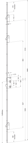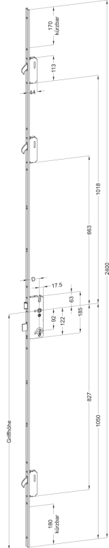 WINKHAUS, Objekttür-Mehrfachverriegelung, Lochung: Profilzylinder gelocht, Dornmaß: 35 mm, Entfernung: 92 mm, Drückernussvierkant: 8 mm, Stulpbreite: 24x8 mm, Stulpausführung: kantig, Stulpform: U-Stulp, Stulpeigenschaft: gerade, Stulpstärke: 3 mm, Modell: STV, Modellnummer: U2471-69 M3, Ausführung: Schlüsselbetätigt, DIN-Richtung: DIN Links-Rechts, Einzelteilmaterial Stulp: Stahl, Farbton Stulp: grau, Oberfläche Stulp: pulverbeschichtet, Griffhöhe: 1050 mm, Anzahl Zusatzverriegelung: 3 St., Verriegelungsart: Schwenkriegel, Schlossklasse: Klasse 3, Riegelausschluss: 20 mm, Wechsel: mit Wechsel, Funktion: Normalfunktion, Türart: Abschlusstür, hohe Tür, Türflügelanzahl: einflügelig, zweiflügelig, Türausprägung: Türe stumpf, Schlossriegel: 2 tourig, Einzelteilmaterial Falle: Stahl, Falleneigenschaft: mit umstellbarer Falle LS/RS, Einzelteilmaterial Riegel: Stahl, Riegeleigenschaft: Standard, Einzelteilmaterial Verriegelungen: Stahl, Drückernuss: Standard, Einzelteilmaterial Drückernuss: Stahl, Schlosskasten: geschlossen, Einzelteilmaterial Schlosskasten: Stahl, Oberfläche Schlosskasten: verzinkt, Schlosskastenlänge: 185 mm, Schlosskastenbreite: 49,5 mm, Norm: DIN 18251, Türwerkstoff: Holz, Aluminium, Kunststoff